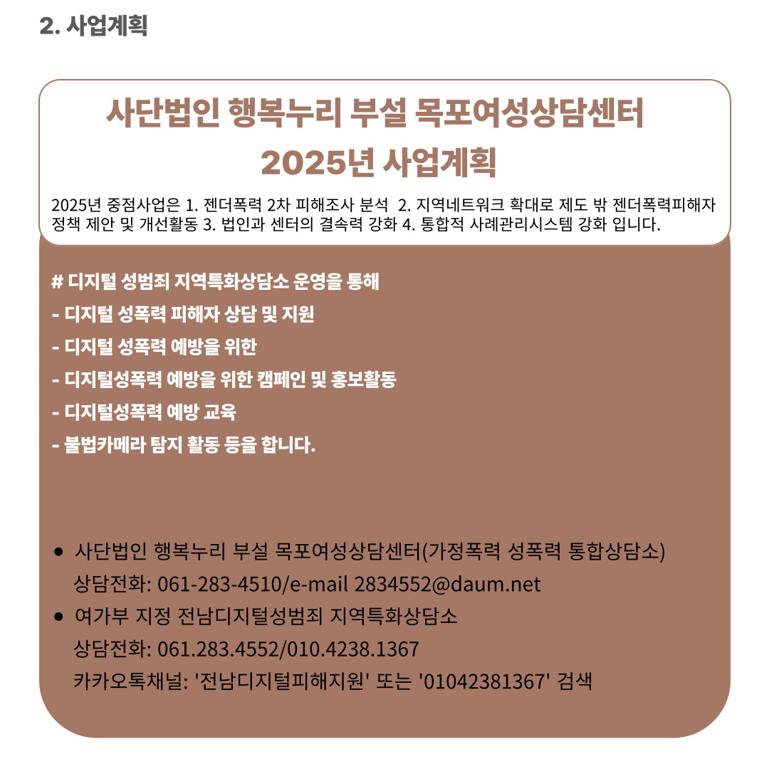 부설기관 목포여성상담센터 (가정폭력. 성폭력 통합상담소)